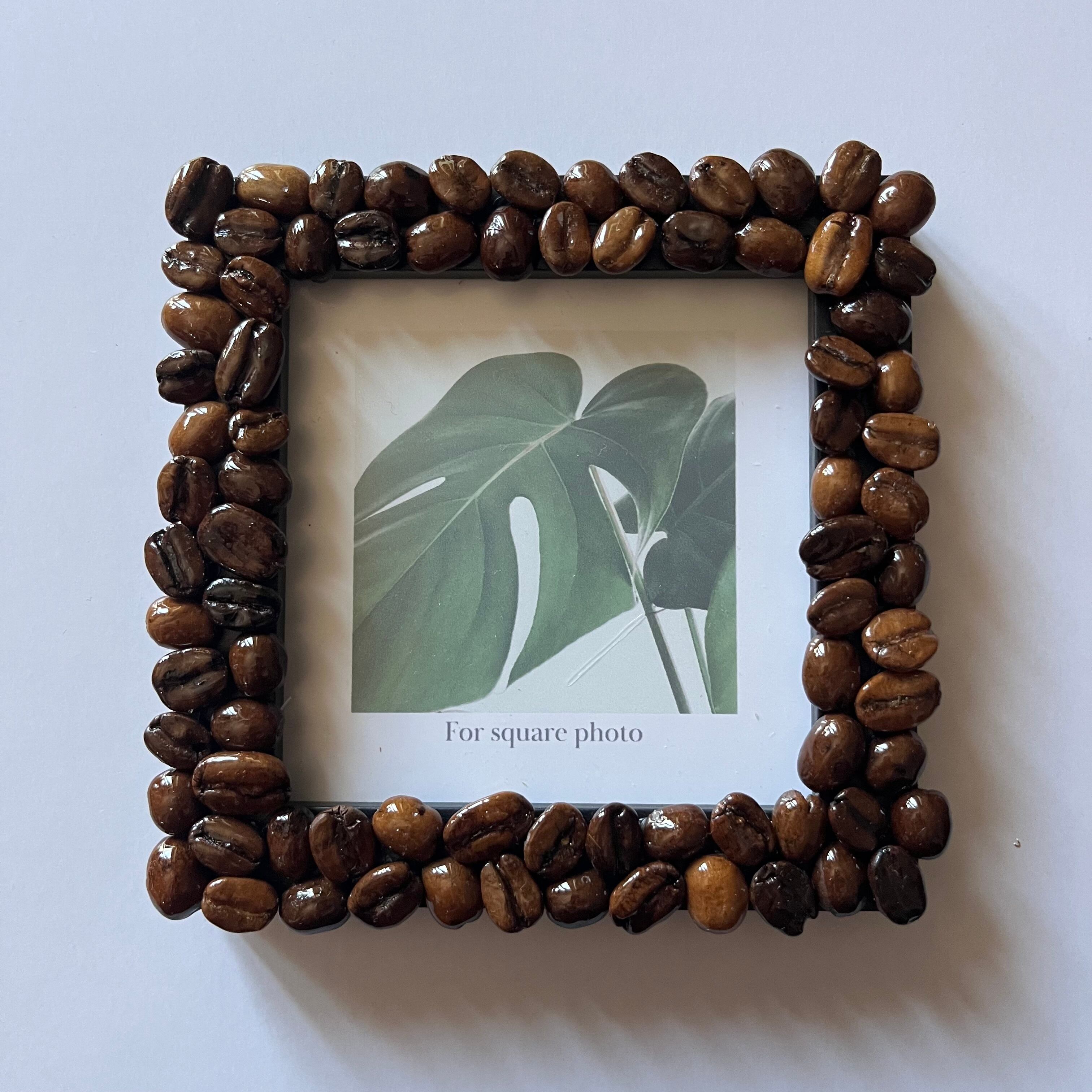 フレーム全体に欠点豆達を敷き詰め、何を入れてもコーヒーが全面に出てくるような、スクエアタイプのフォトフレーム。